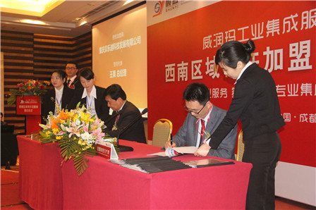 2014年2月24日上午,威潤瑪工業(yè)集成服務(wù)連鎖西南區(qū)域特許加盟商簽約儀式在成都潤邦國際酒店隆重舉行。本次活動是威潤瑪工業(yè)集成服務(wù)連鎖的第一次簽約儀式,是順益體系(集團(tuán))發(fā)展戰(zhàn)略的重大里程碑,將推動和影響中國工業(yè)品行業(yè)的創(chuàng)新與發(fā)展。作為中國首家工業(yè)集成服務(wù)連鎖機(jī)構(gòu)的首批14家項目加盟商,將共享順益體系(集團(tuán))深厚的競爭優(yōu)勢,突破發(fā)展中的瓶頸,實現(xiàn)與順益的優(yōu)勢互補(bǔ)、合作雙贏、共同成長!