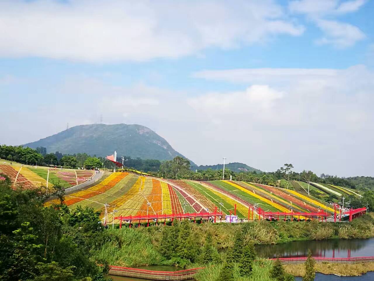 第一站游覽濕地花園,美不勝收的花海成為了婚紗拍攝圣地之一,身處其中,幸福洋溢。緊接著坐園內的電瓶觀光車到達三洲茶園、茶翁古鎮,大家嘗茶點、觀茶戲,看舞獅,格外愜意。