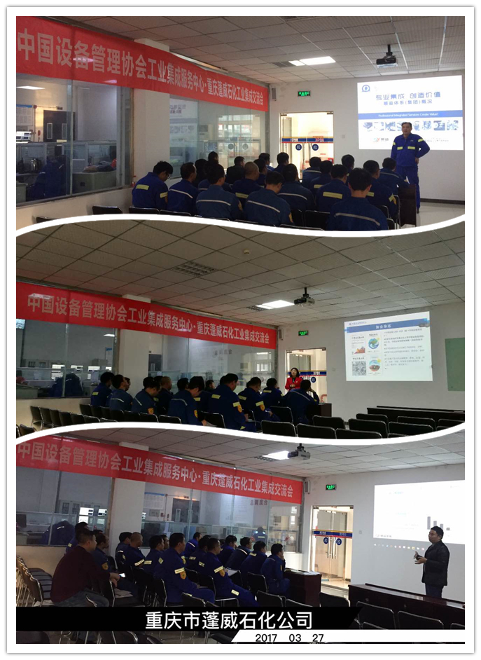 2017年3月27日,中國設備管理協會工業集成服務中心邀請了順益體系(集團)、廣州厚誠潤滑油有限公司相關技術人員在重慶市蓬威石化有限責任公司召開了工業集成服務交流會。重慶市蓬威石化有限責任公司相關領導及技術人員參加了此次會議。