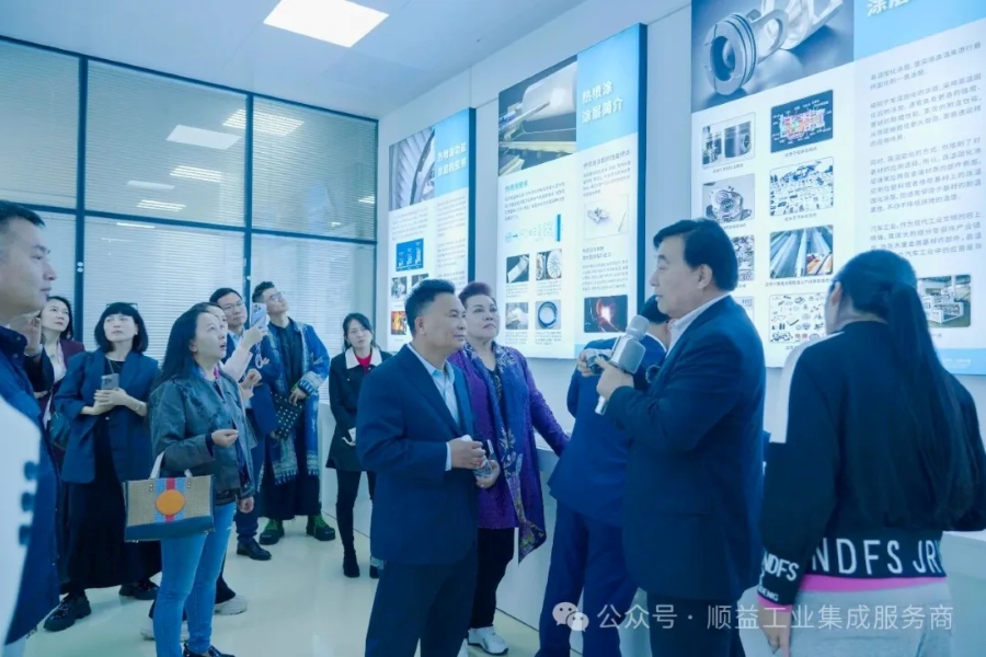 下午,參會人員先后參觀了表面處理實驗中心、噴涂實驗中心、實驗檢測中心、臺架試驗中心、德國漢高樂泰體驗中心、Krytox高性能潤滑劑應用展示廳、特種功能涂層材料應用展示廳、高性能彈性體及塑料應用展示廳、新能源汽車新材料應用展示廳、順益科技園新材料科普教育基地、新材料新應用實訓基地和工業(yè)集成服務展示體驗中心等多個重要區(qū)域。了解了順益科技園在設備維護、節(jié)能增效等工業(yè)服務場景中的新材料創(chuàng)新實踐,并給予高度評價。