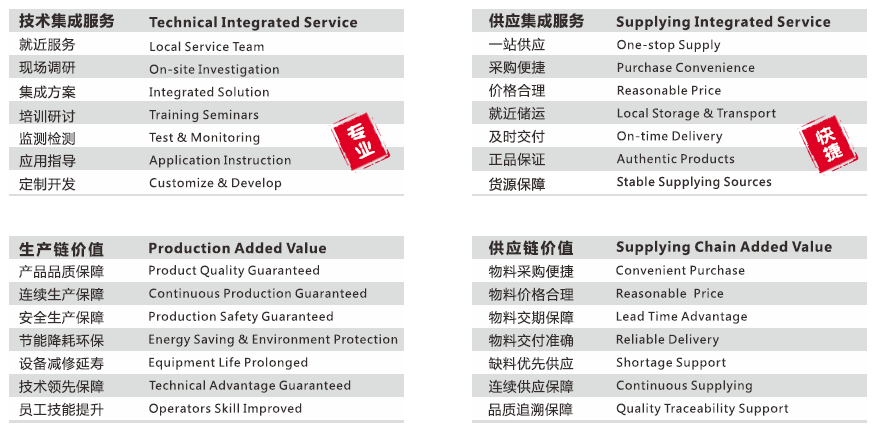 在潤(rùn)滑、膠黏、密封、表面處理等領(lǐng)域,立足于客戶的使用和采購(gòu)需求,依靠合理化、專(zhuān)業(yè)化、系統(tǒng)化的應(yīng)用技術(shù)解決方案,幫助客戶降低綜合的管理成本、使用成本和采購(gòu)成本,提高客戶的綜合生產(chǎn)經(jīng)營(yíng)效益。